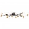 Celebrity ー это изобретательное произведение искусства. Источник света представлен двумя видами плафонов: двойное стекло и акриловое стекло в сочетании с латунной металлической окантовкой. Эти маленькие огоньки раскинуты по всей площади светильника и создают ощущение, что в вашей квартире есть свое небольшое звёздное небо. Плафоны расположены на концах арматур, которые по кругу выходят из цилиндра в центре. Материал плафонов: стекло, акрил. Цвета арматуры: черный и золото.