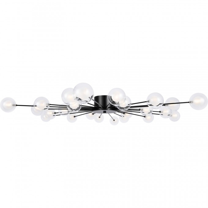Celebrity ー это изобретательное произведение искусства. Источник света представлен двумя видами плафонов: двойное стекло и акриловое стекло в сочетании с латунной металлической окантовкой. Эти маленькие огоньки раскинуты по всей площади светильника и создают ощущение, что в вашей квартире есть свое небольшое звёздное небо. Плафоны расположены на концах арматур, которые по кругу выходят из цилиндра в центре. Материал плафонов: стекло, акрил. Цвета арматуры: черный и золото.